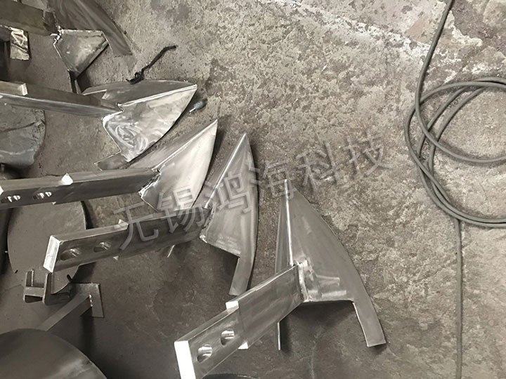 飛刀組由多把飛刀組成,通過(guò)付電機(jī)直接驅(qū)動(dòng),安裝在筒體側(cè)面。